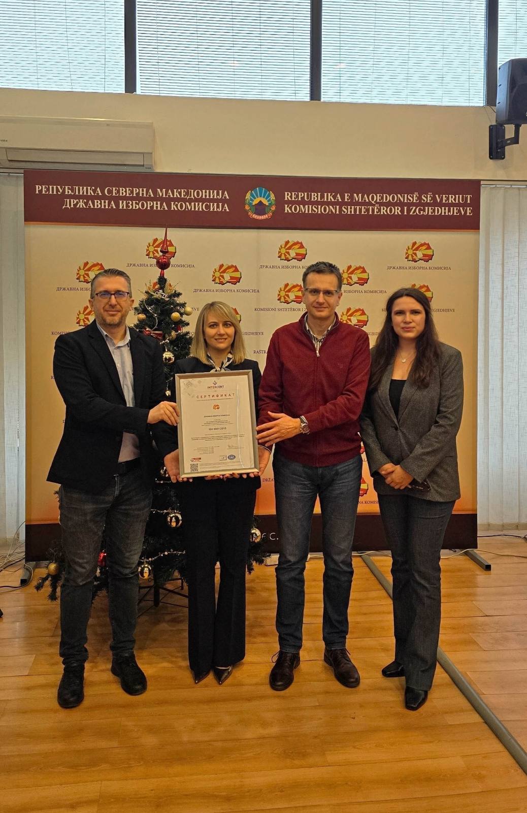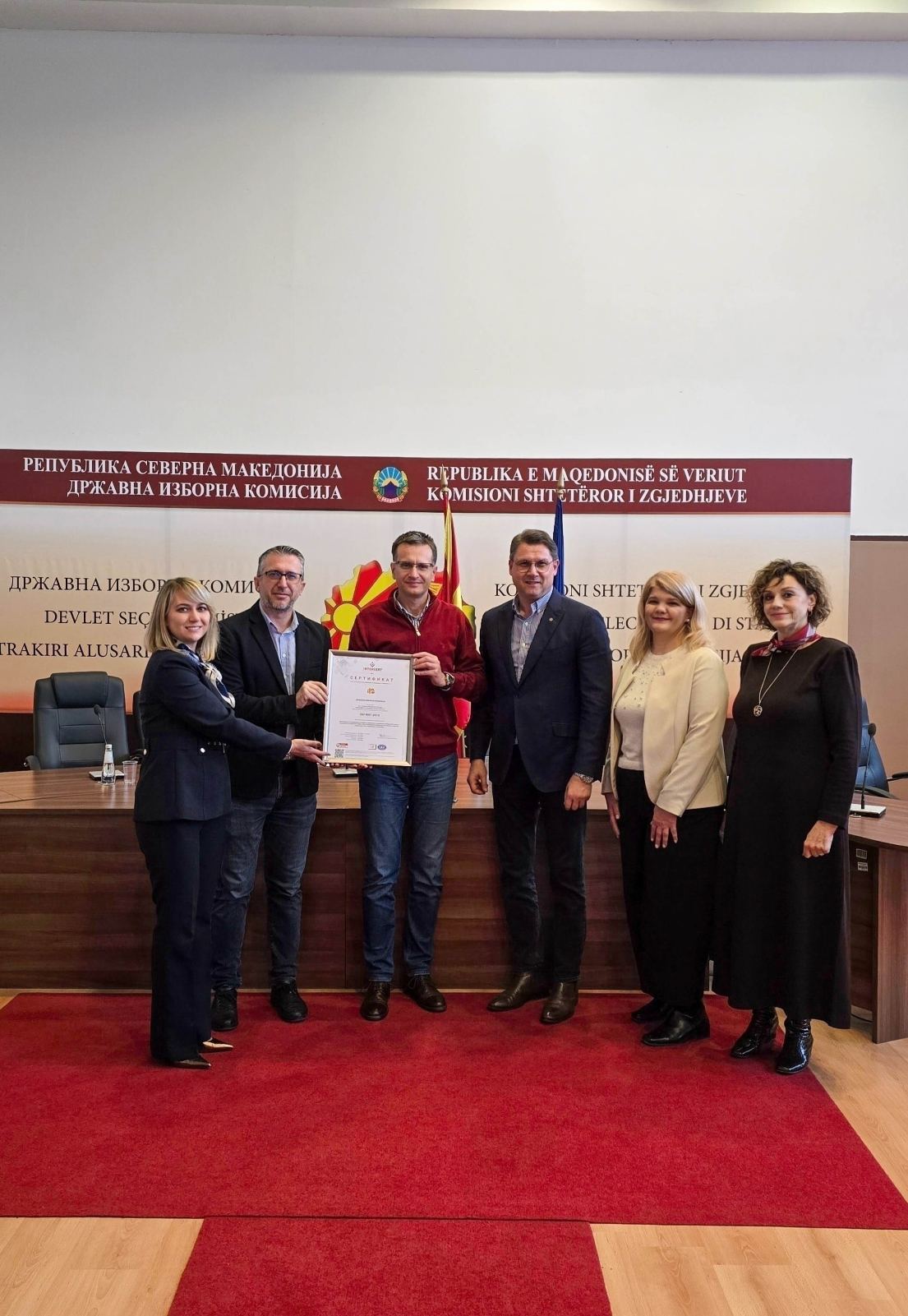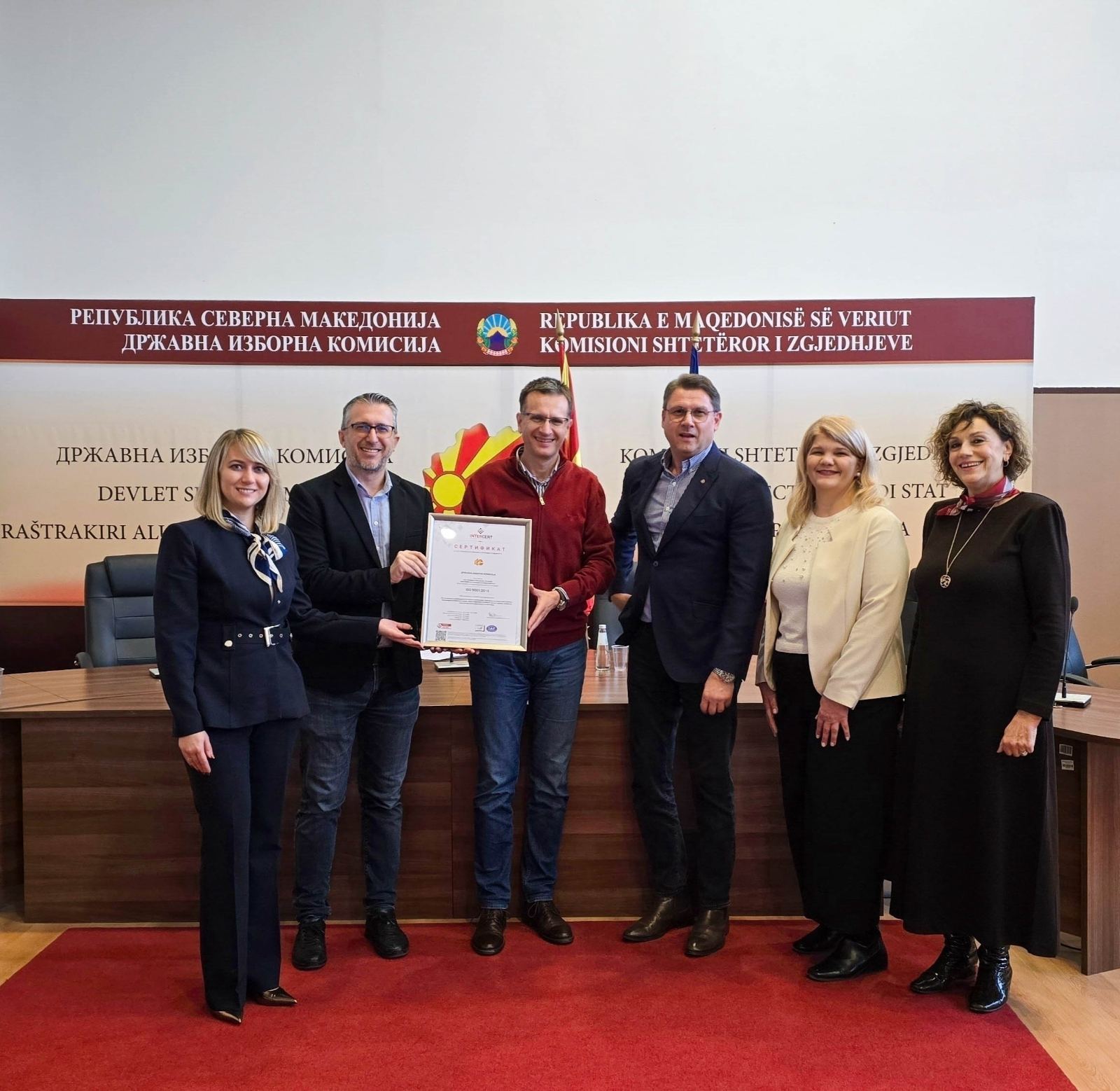 Државната изборна комисија (ДИК) успешно ја заврши постапката за ресертификација на ISO 9001:2015, меѓународниот стандард за системи за управување со квалитет. Оваа потврда е доказ за континуираната посветеност на ДИК кон ефикасност, транспарентност и професионалност во сите процеси поврзани со организирањето и спроведувањето на изборите.