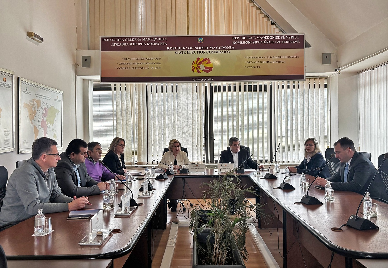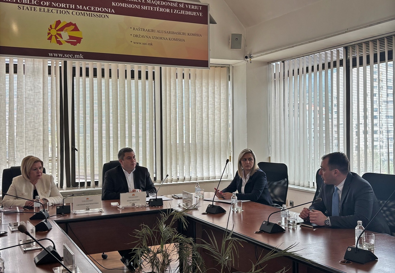 Anëtarët e Komisionit Shtetëror të Zgjedhjeve (KSHZ) mbajtën një takim pune me ministrin e Transformimit Digjital, Stefan Andonovski, në të cilin tema të diskutimit ishin avancimi i bashkëpunimit institucional dhe aplikimi i zgjidhjeve të reja digjitale në procesin zgjedhor.
